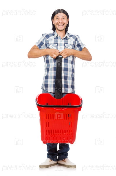Мужчина с продуктовой тележкой