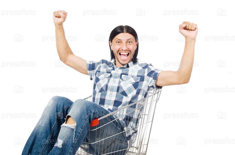Мужчина с продуктовой тележкой