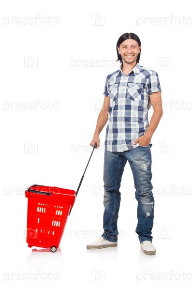 Мужчина с продуктовой тележкой