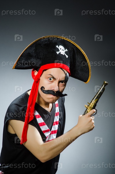 Смешной пират в темной студии