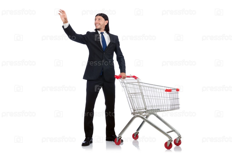 Мужчина с продуктовой тележкой