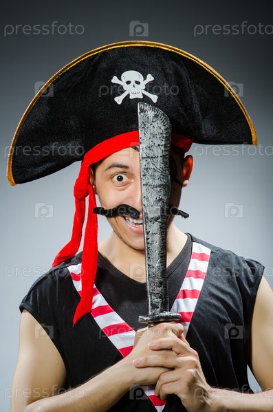 Смешной пират в темной студии