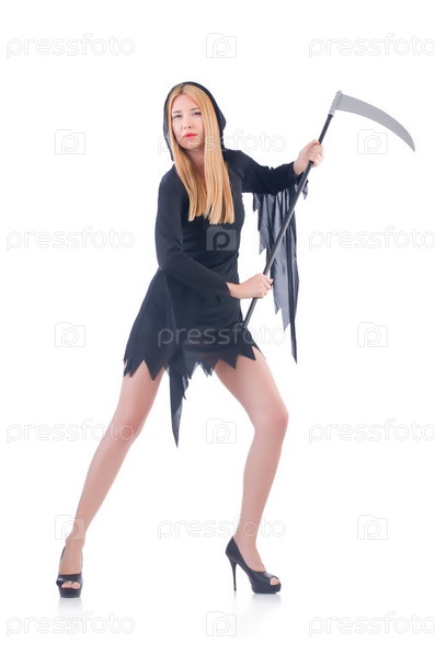 Женщина в костюме на Хэллоуин с косой