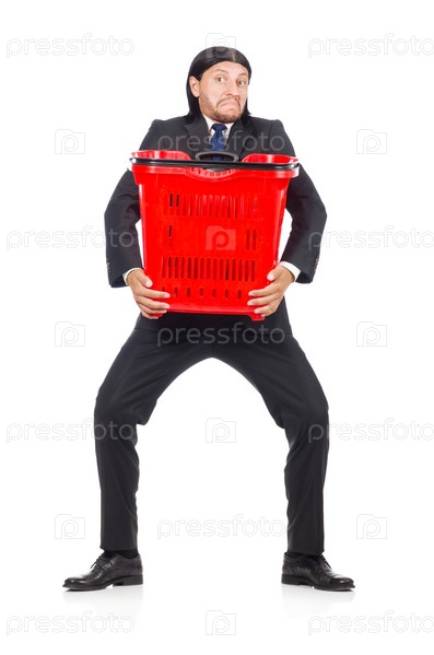 Мужчина с продуктовой тележкой