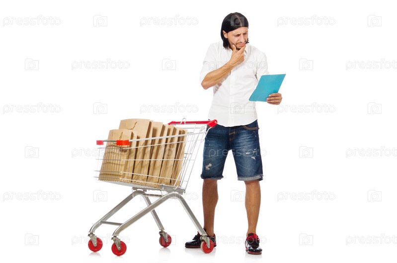 Мужчина с продуктовой тележкой