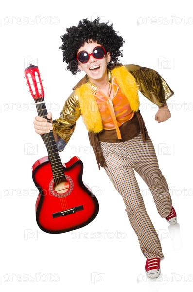Человек с гитарой на белом фоне