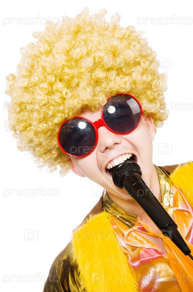 Человек с микрофоном, изолированный на белом
