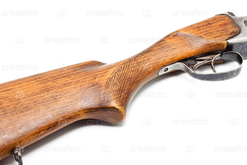 Приклад охотничьего ружья на белом фоне