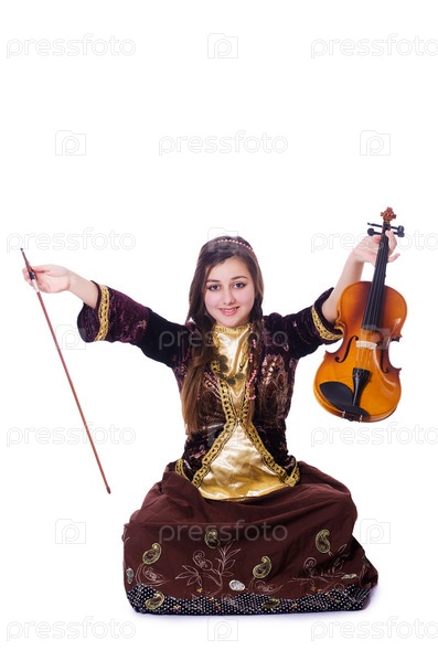 Женщина играет на скрипке на белом фоне