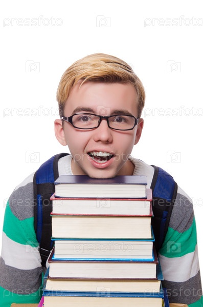 Смешной студент с книгами