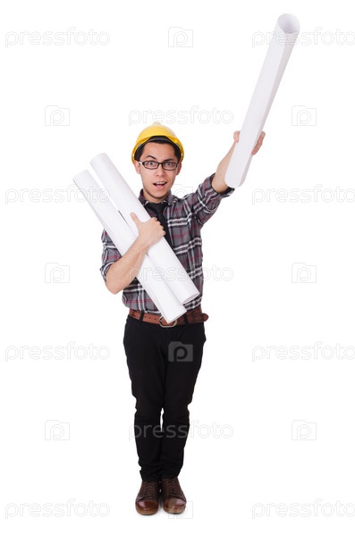 Забавный человек с чертежами