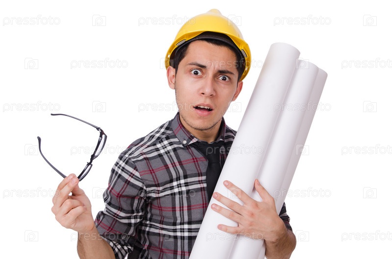 Забавный человек с чертежами