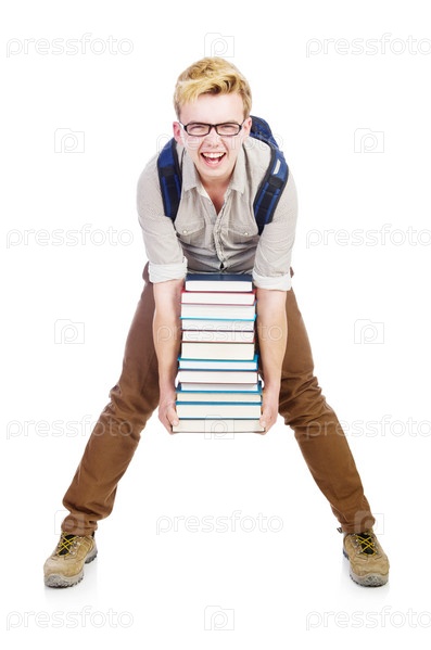 Смешной студент с книгами