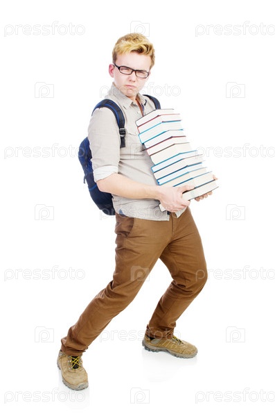 Смешной студент с книгами