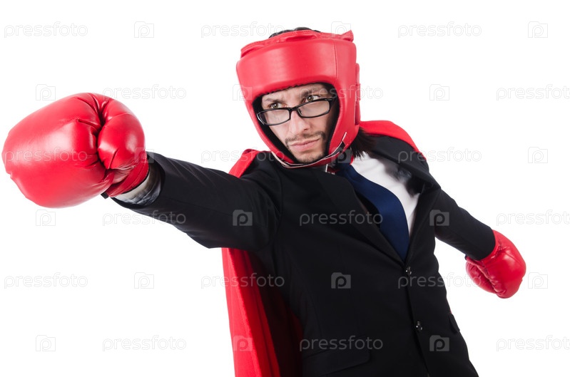 Молодой бизнесмен в боксерских перчатках