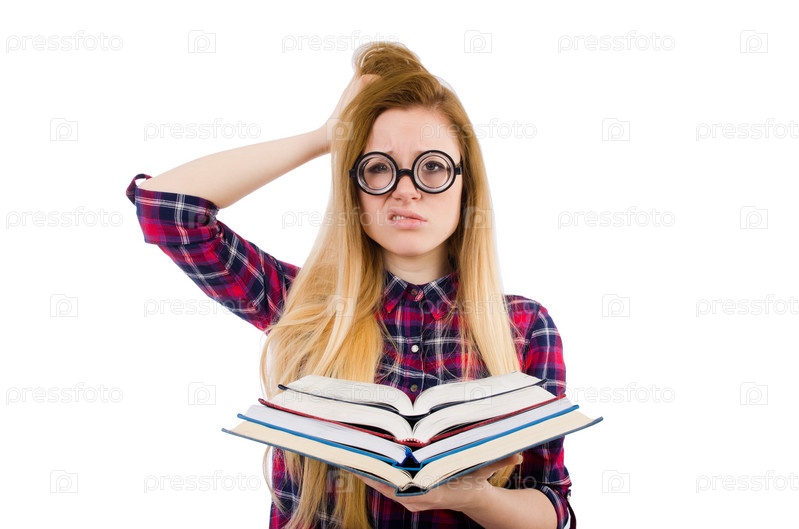 Смешной студент с книгами