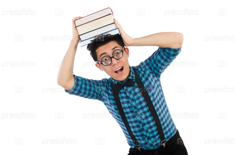 Смешной студент с книгами