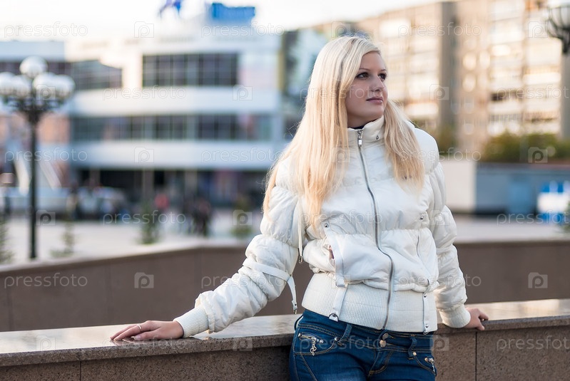 Блондинка на фоне города