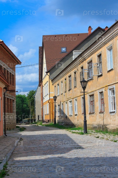 Улица с домами и фонарями