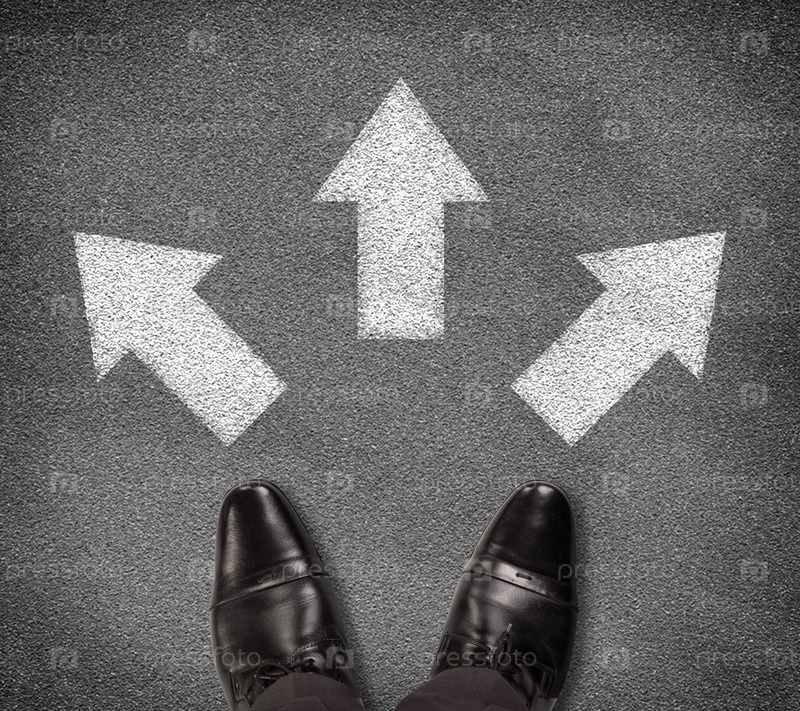 Ботинки на дороге со стрелками