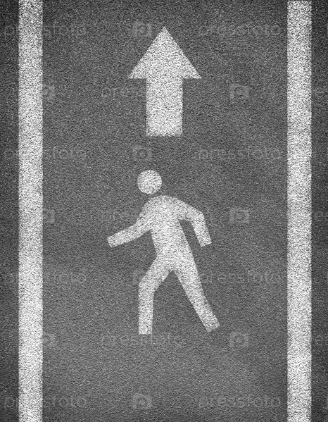 Асфальтированная дорога с двумя линиями и знаком пешехода