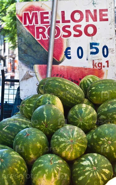 Свежие арбузы на рынке