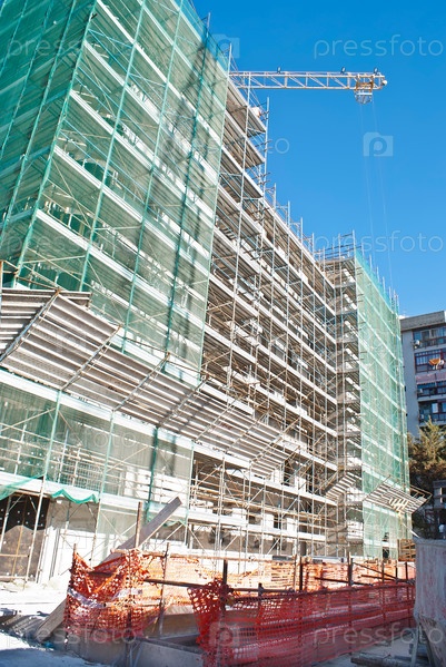 Высотное здание на строительной площадке