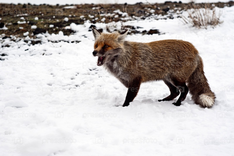 Рыжая лисица в снегу