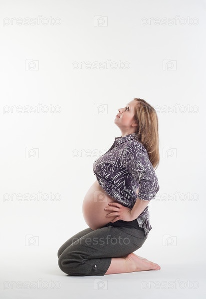 Беременная женщина на светлом фоне