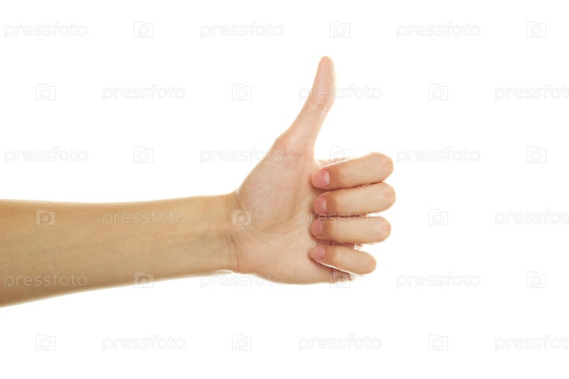 Женская рука с большим пальцем вверх, изолированная на белом фоне