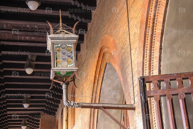 Фонарь во дворе дворца Комунале в Болонье. Италия