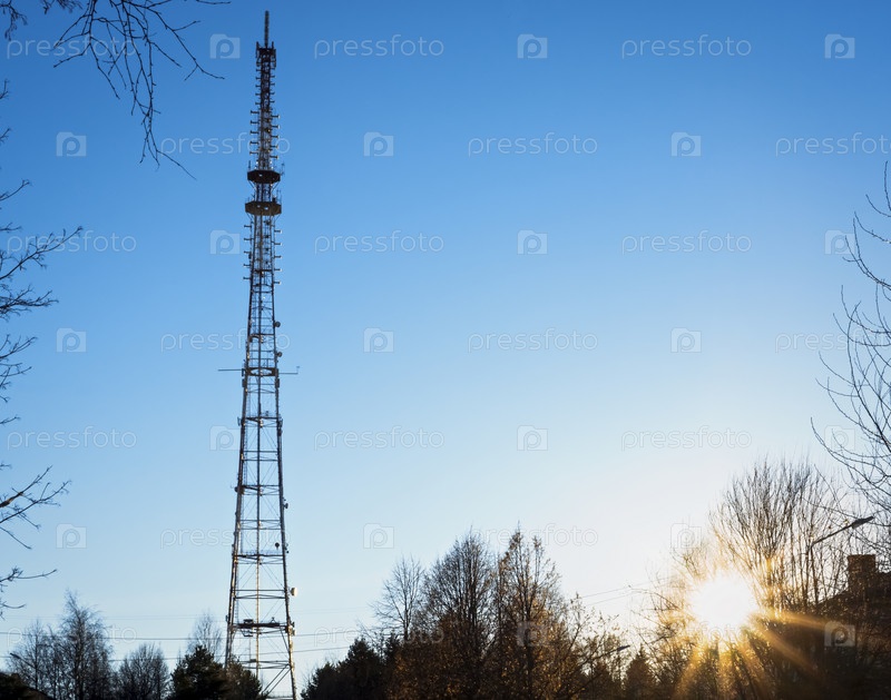 Телевизионная вышка на фоне закатного неба