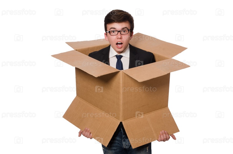 Забавный бизнесмен в коробке