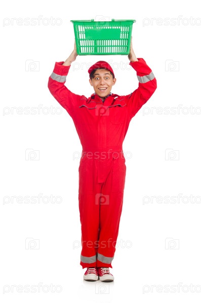 Рабочий с корзиной для покупок