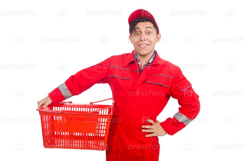 Рабочий с корзиной для покупок
