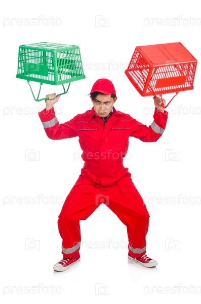 Рабочий с корзиной для покупок