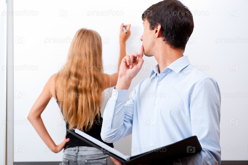 Преподаватель и студентка у доски