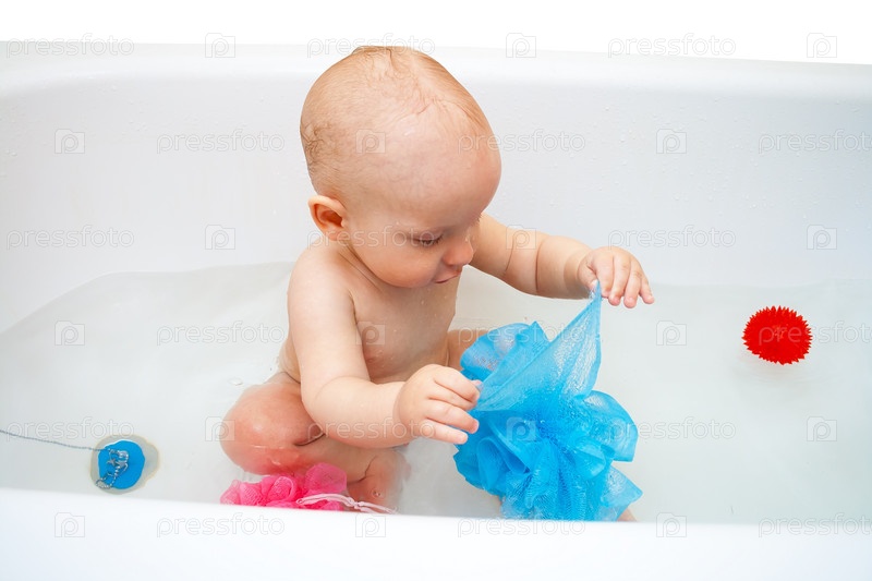 Счастливый ребенок купается в ванне