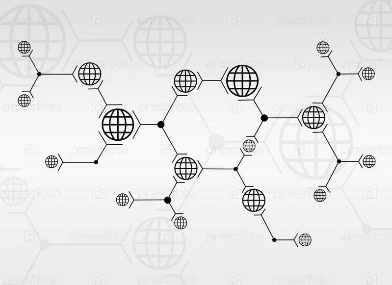 Абстрактная композиция из черных линий и глобусов
