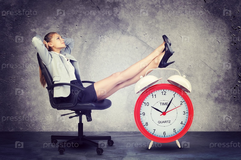 Бизнес-леди положила ноги на будильник