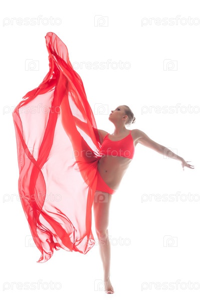 Молодая гимнастка на белом фоне
