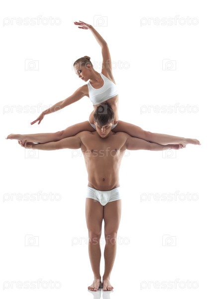 Гимнасты позируют на белом фоне