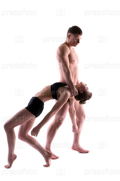 Гимнасты позируют на белом фоне