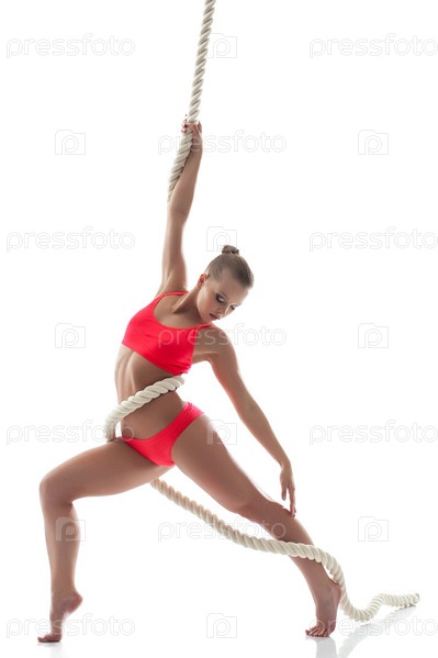 Стройная женщина позирует на канате в студии