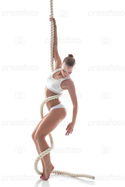 Стройная женщина позирует на канате в студии