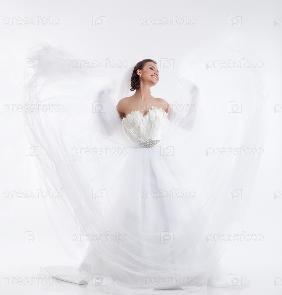 Невеста позирует на белом фоне
