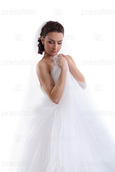 Невеста позирует на белом фоне