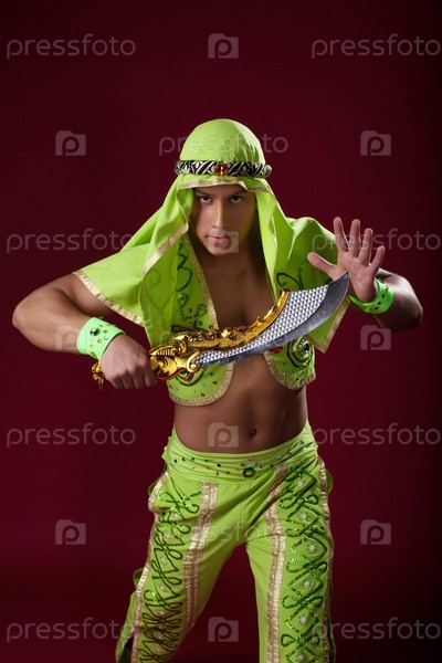 Молодой мужчина с саблей в студии