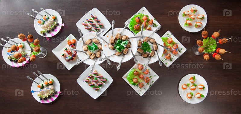 Много вкусных закусок на столе