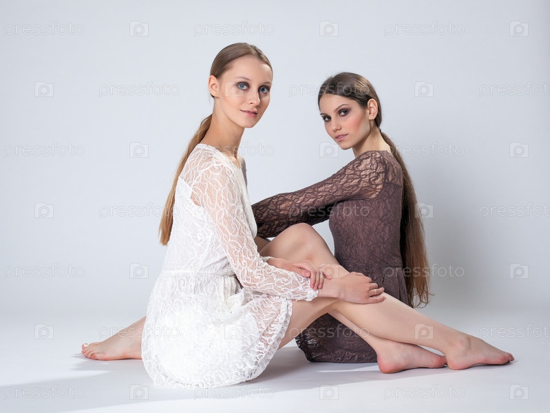 Две красивые девушки позируют в стильных платьях